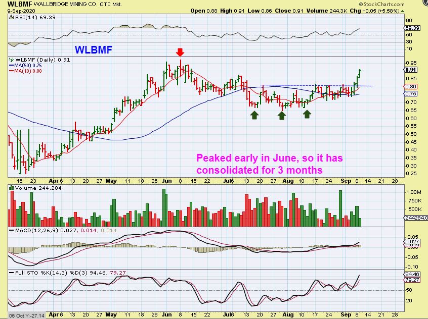 WLBMF was then pointed out again on September 9 as it broke from a consolidation. This can now make a run back to recent highs ( so it could be bought for a trade & maybe even hold on for more). So now…