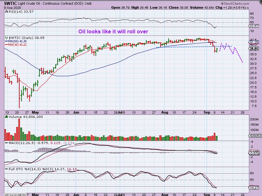 WTIC – Oil broke down & reversed, but I think that we are too early for a dcl, so this could bounce & drop.