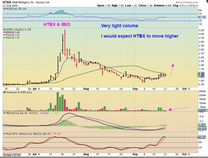 HTBX (& IBIO) were slightly down , but the trades are still bullish set ups.
