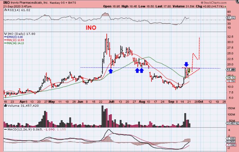 NVAX was pointed out on Sept 14 as a break out at $100. We had made nice gains on just the partial run in the past. I mentioned it again in the next report and Friday…
