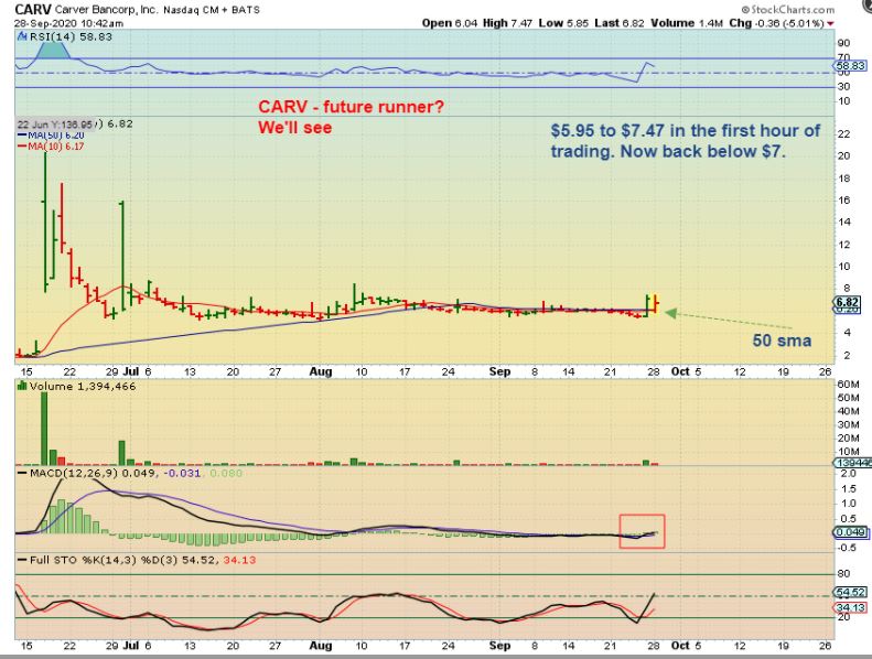 CARV has a long consolidation after a huge move in June. This stock has been Popping & chopping these past 2 days, so I am keeping my eye on it. yesterday it went from Under $6 to over $7 in the first hour.