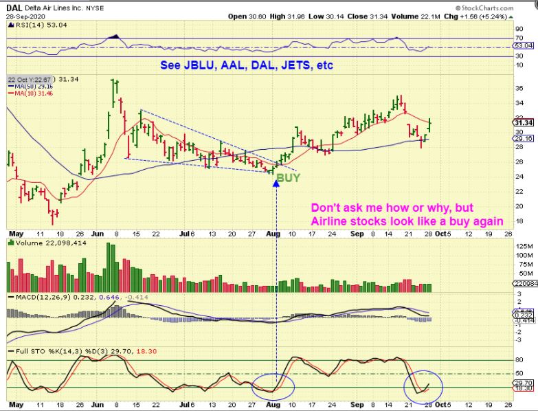 DAL– I called the airline companies a buy a while ago and they did well. They have set up as a buy again with the General market sell off and dcl. I admit, I can only guess how these companies can be setting up as a buy again when business has been drastically cut during the covid spread.