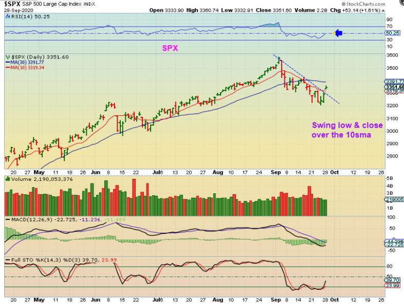 The SPX broke the downtrend & closed above the 10 sma, so this should finally be a confirmed dcl in place.
