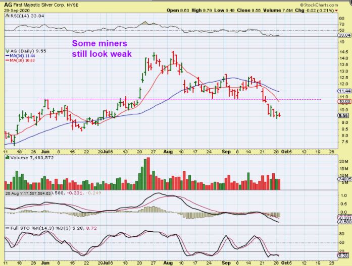 AG – I remember when Sprott announced buying AG and everyone thought that it would just take off because of that. So far it is one of the weaker Miners out there, still at the recent lows.
