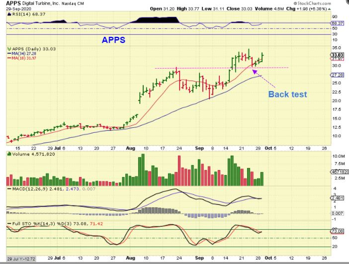 APPS did a pull back / back test and this is a decent place to add. The set up remains bullish.