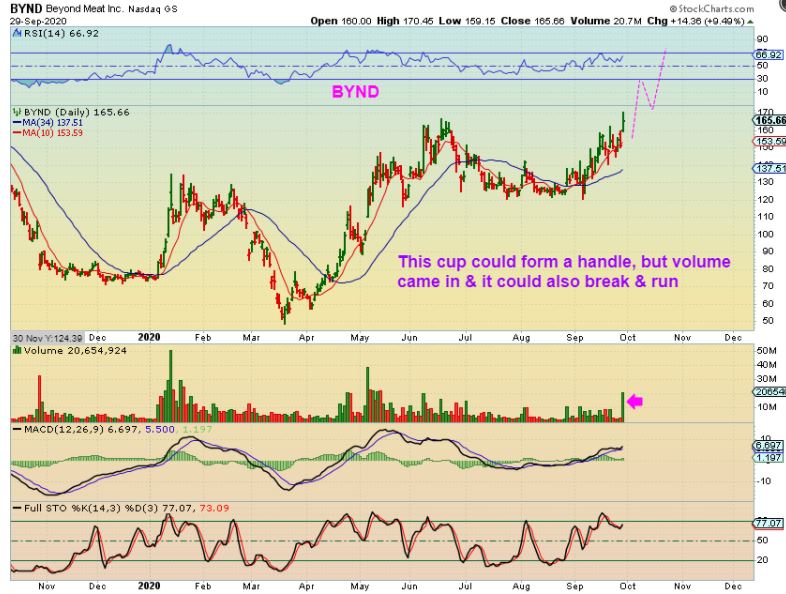 In mid-September BYND was pointed out as possibly starting to form a cup as it chopped along the 50sma, so it was a buy, however…