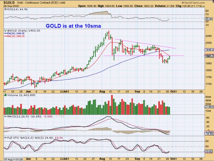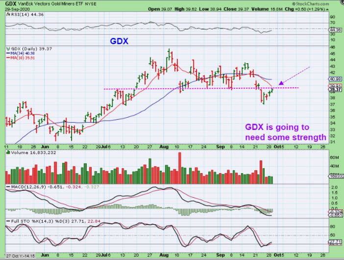 GDX is also still under the 10sma. I do think that GDX needs some strength to get above this resistance area, and yes that can happen. It happened at the last DCL when suddenly GDX gapped up big time above the 10 sma, so we’ll see how this week continues to play out.