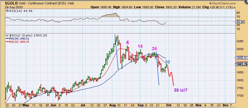 I zoomed in and drew up a 2nd Gold chart, just to make sure that I get the day count correct while showing that drop. I apparently missed a small candle or 2 on the other chart, so here is the 2nd one that is a bit easier to see 🙂 Today would be day 35 if a DCL is not in place.