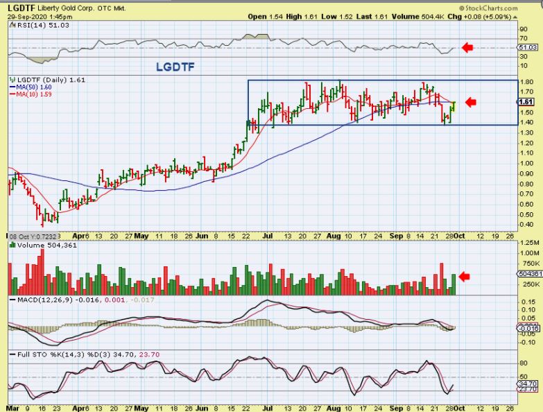 LGDTF – I grabbed this chart midday because I actually think that this set up is bullish & constructive. It may just continue to consolidate in this box, but volume was strong and it is pushing on the 50sma.