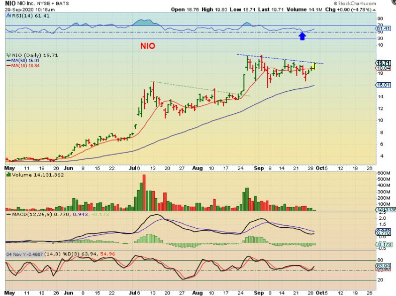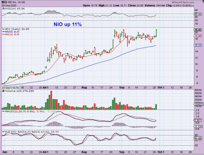 NIO closed the day up 11% with a volume pop.