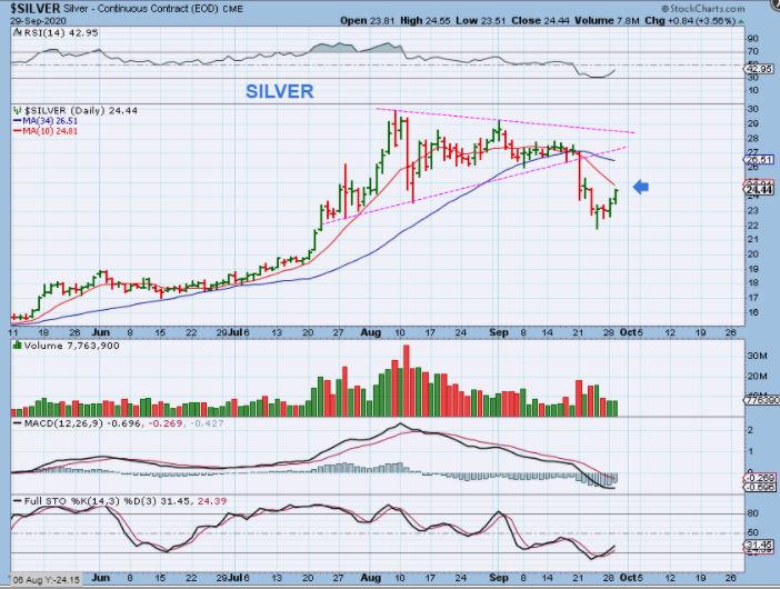 SILVER -At this point Silver also has not regained the 10sma.