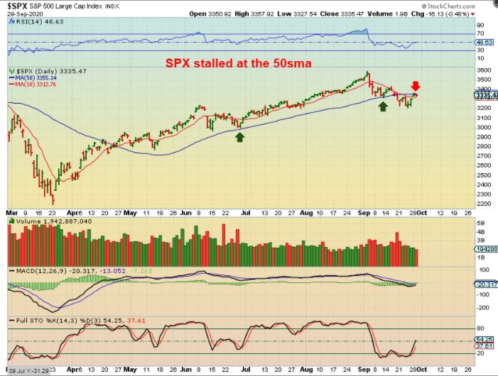 Both the NASDAQ & The SPX stalled t the 50 sma, but…