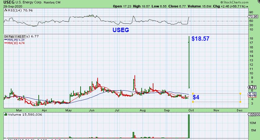 USEG popped from $4 to $18 and then dropped to $6.77, still up 55%. Crazy moves.