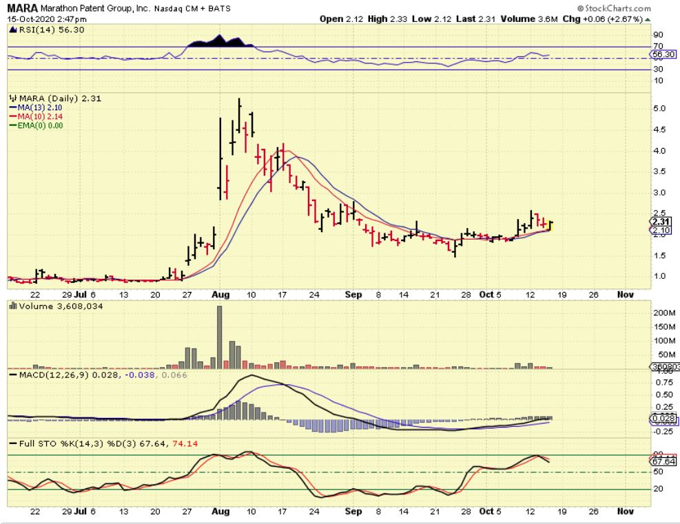 MARA 2:27 p.m  – Yesterday we saw Mara & Riot drop at the open but claw their way back into the end of the day. With Bitcoin dropping, we might see that again.  I think that reversals like this are low risk entries or a good place to add to current positions, since you can put a stop under the 10sma.