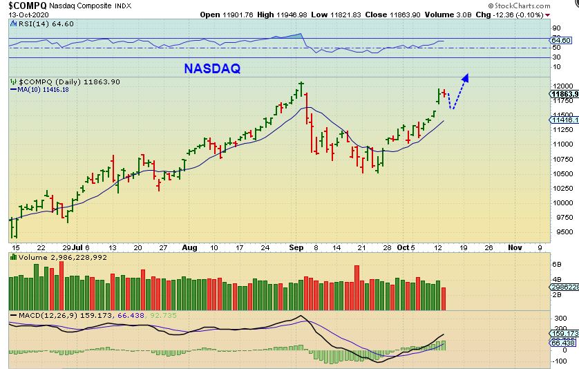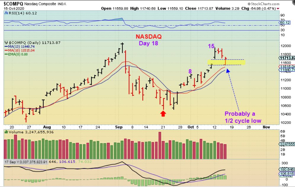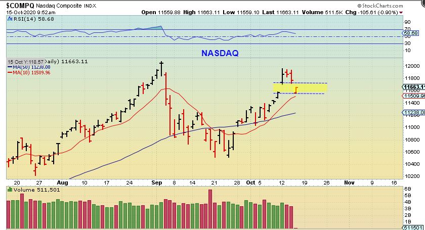 IN A PRIOR REPPORT: THE NADSAQ – I mentioned on Oct 13th that we may see further selling. It could look  something like this giving us a gap fill and drop to the 10sma.