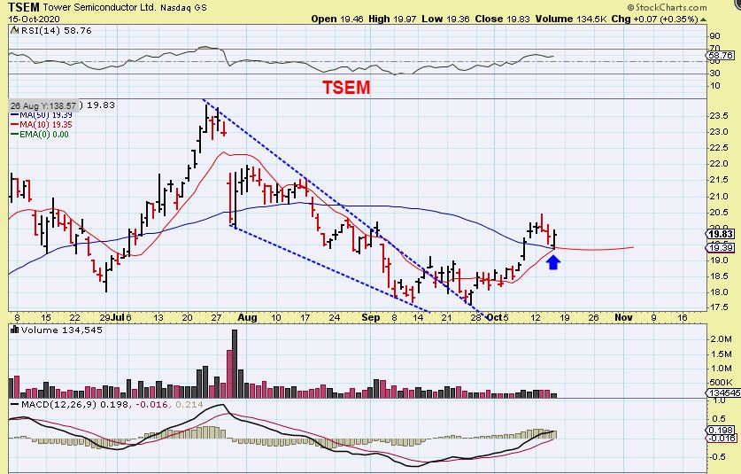 CREE, JBL, MU, AMD have been acting bullishly.  TSEM is in the same sector, so it may also make the run next.