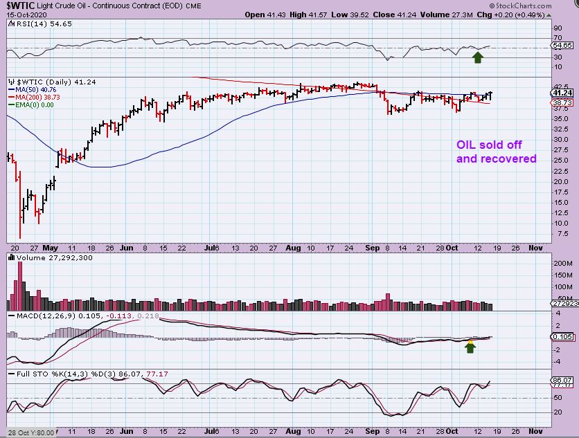 WTIC – Oil dropped in the morning and then recovered pretty strongly by the end of the day. So far it is choppy and sideways, but does look promising here. What about the Oil Stocks?