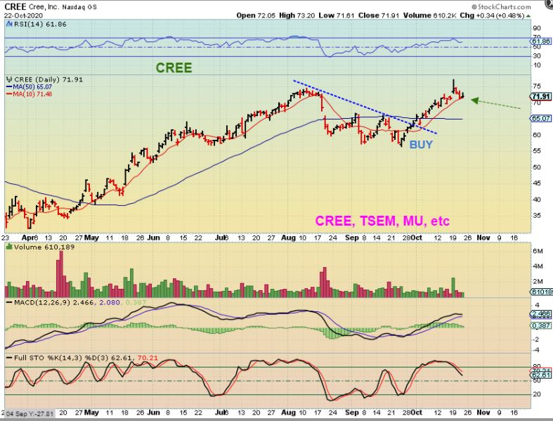 In September CREE was a semiconductor play as a buy along with TSEM, MU, JBL, AMD, etc .