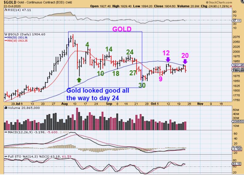The USD FROM YESTERDAYS REPORT: This was important. The USD dropped below what I had labeled as the daily cycle low at day 27. This made me wonder: