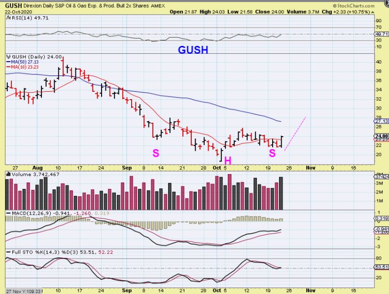 GUSH – That also would make GUSH reversal a Buy, and a stop should be used under the Thursday lows.