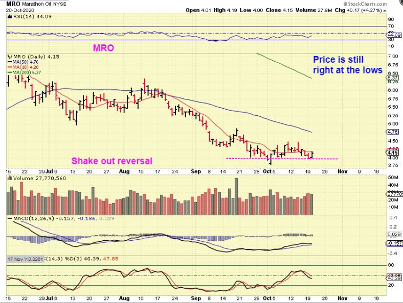 MRO – I posted MRO 2 days ago when it reversed at about $4 using this chart.
