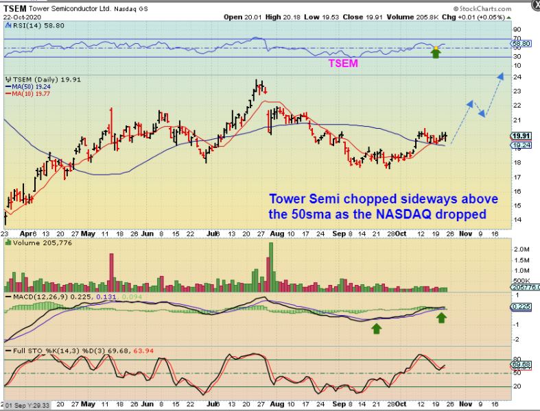 So with some of these, like TSEM, you can add here or start a new position as a low risk entry. If you bought back when it was first recommended, this would be a low risk place to ‘add’ with a stop under the 50sma too.