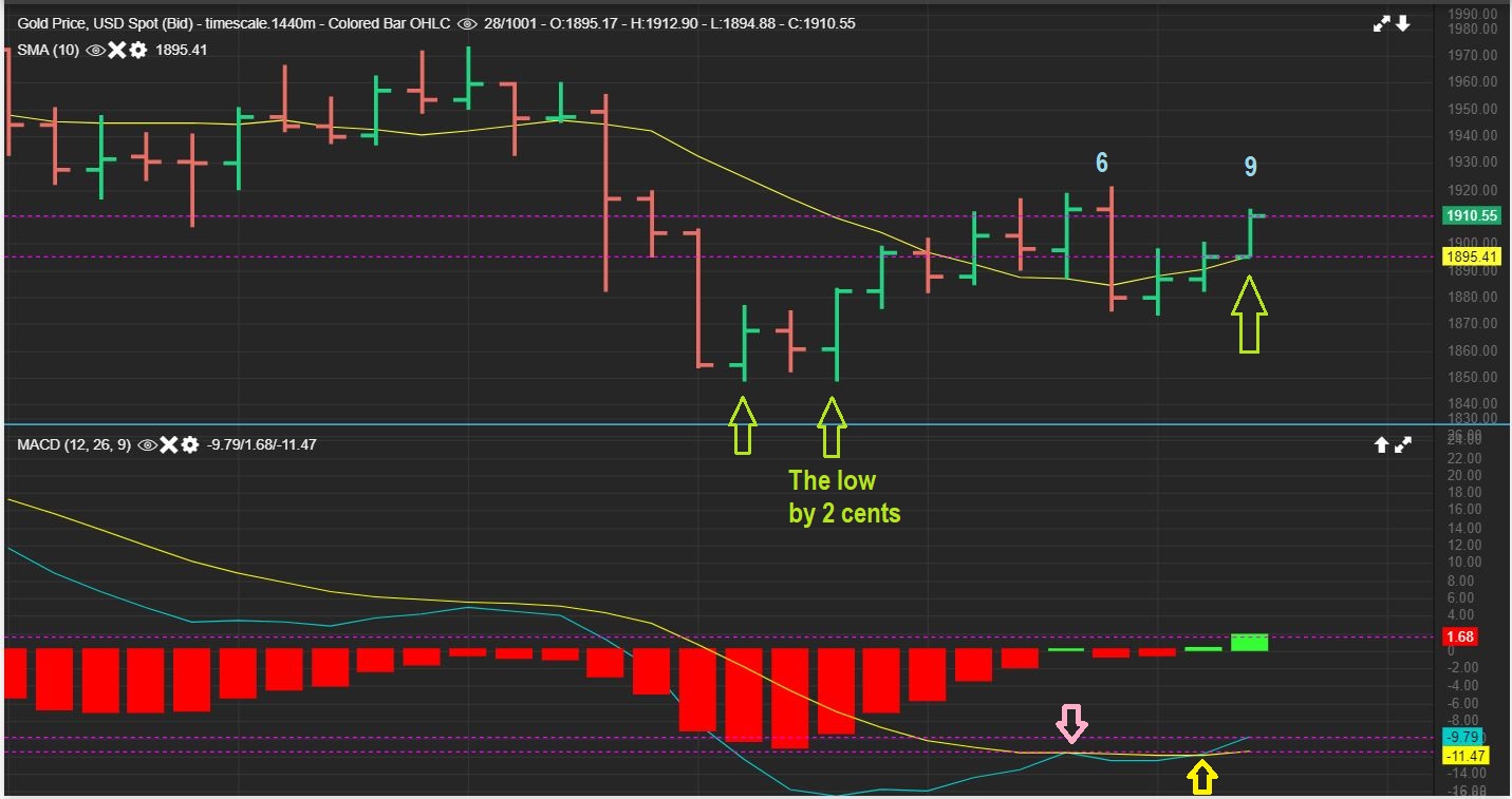 GOLD – I zoomed in and I noticed that the MACD is actually crossing higher too.  This really is starting to stealthily look Bullish, it doesn’t match what I would expect if the USD is going to put in a dcl & Bounce higher.