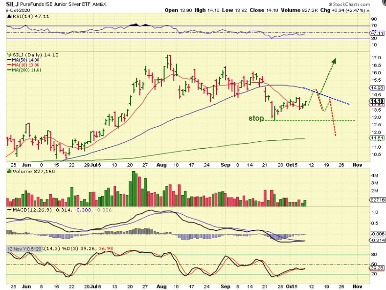 If YOU want to buy a Miner or a few Miners or an ETF, you simply do what was mentioned at the dcl earlier.  You buy with a stop under recent lows. If you were going to buy SILJ for example, it would look like this.  It would be a shame to get stopped out & then have to rebuy if an ICL just reverses off of the 200sma, but these are the rules that we play with.  You may decide to  just ride it out knowing that it will recover after an ICL, but leverage & being heavily positioned can psychologically be tough.