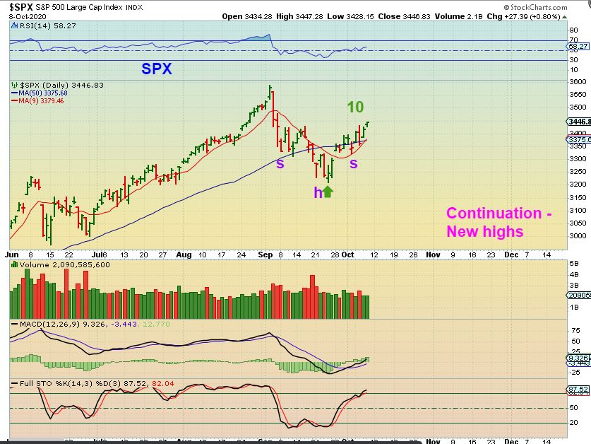 THE SPX saw more follow through on Thursday and we have a day 10 new high.  The set up is bullish and price should continue higher.