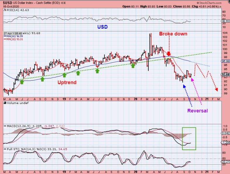 USD WEEKLY #2 – It makes sense that the USD would put in a dcl now and Golds bounce would top now.