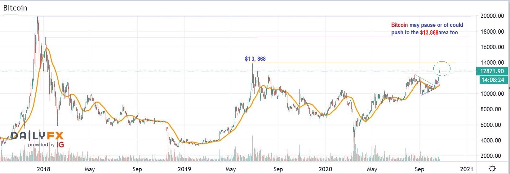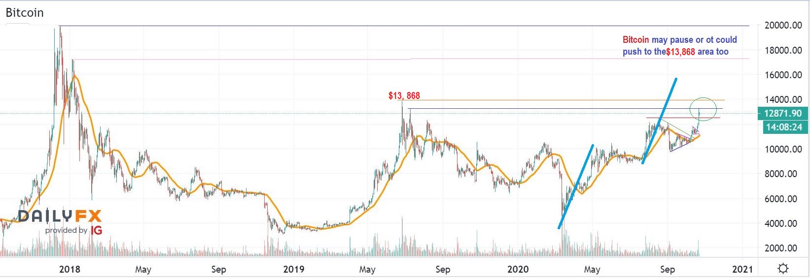 BITCOIN Stepping back we see that Bitcoin pushed above the August 2020 highs this week and ran to the July 2019 peak. The June 2019 peak is $13,868, and that may be next on this run.  In fact…