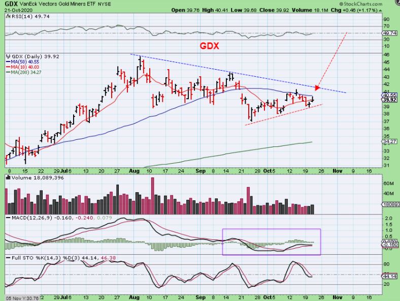 GDX #1 – GDX  was  actually capped by the 50sma with a small pop & drop. That was surprising with the USD drop & Gold & Silver pop.