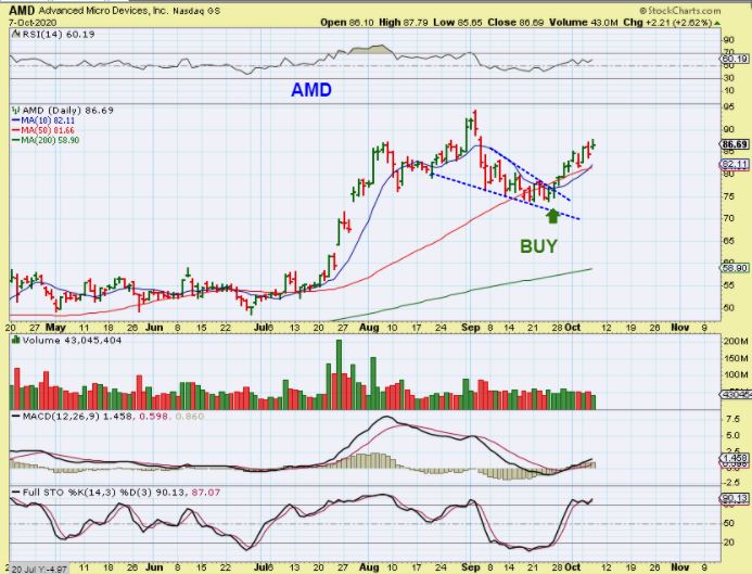 AMD was a buy recently as Semiconductors began to recover. AMD reversed at the 50 sma.
