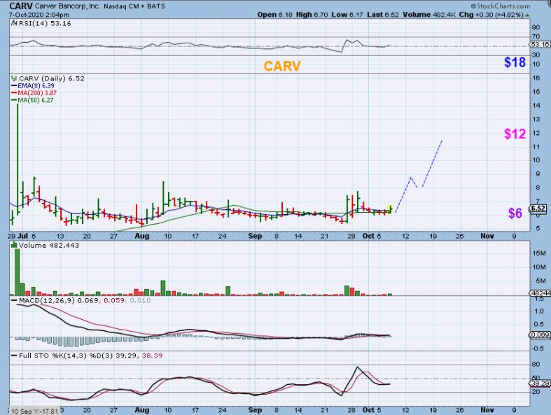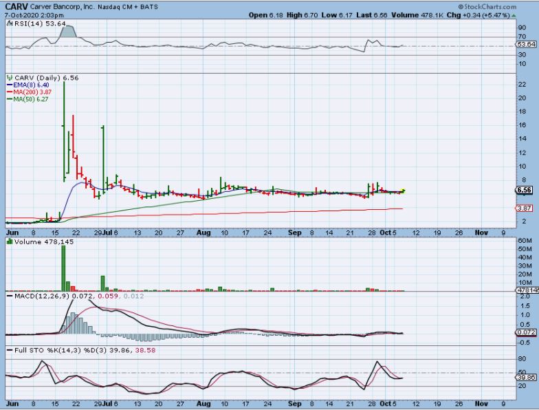 CARV– You can see the small volume pops and it looks like one of these days it will Pop & Start a climb higher. Put it on your watch list with UONEK. I bought CARV earlier this week.