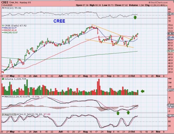 On September 14th CREE was pointed out as a buy with a wedge pattern & divergence too…