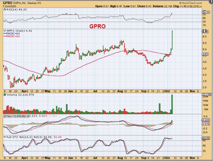 GPRO sold off sharply in August and then in September started to build a cup, but this week it really shot up gaining 30% yesterday alone.