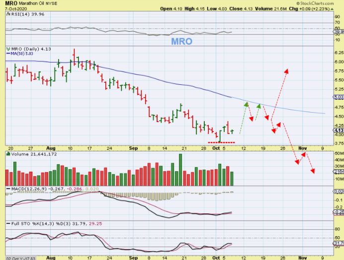 So with MRO for example – You would buy this with a tight stop under the reversal low and see how it plays out. I have drawn in both a bullish and a weaker scenario.
