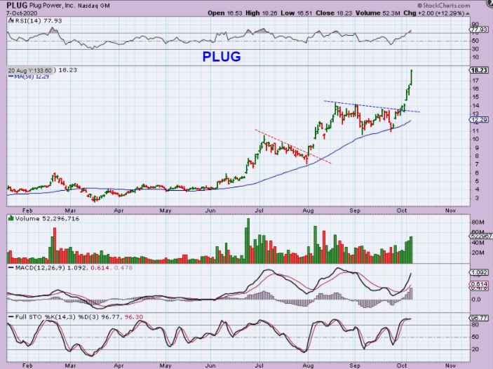 Remember the chart of PLUG above: May that chart of PLUG s acceleration help to keep you in this trade as it forms a cup or breaks to new highs and keeps going. This can run $14 to $21 or more.