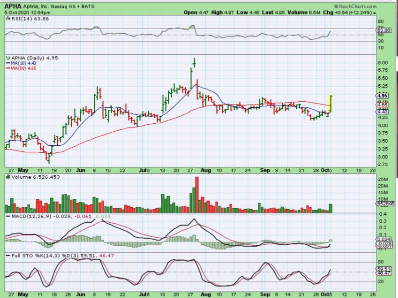Yesterday those medical marijuana stocks started to pop.  Take a look at chart of APHA, TLRY, CGC, CRON, and the ETF  MJ. This sector may be ready to run now too.