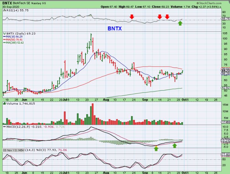 BNTX was pointed out again here below $70 as it headed for the 50sma. Add here or add on a break out above the 50sma.  You could also start a position since it was acting correctly and I mentioned that I still owned BNTX.