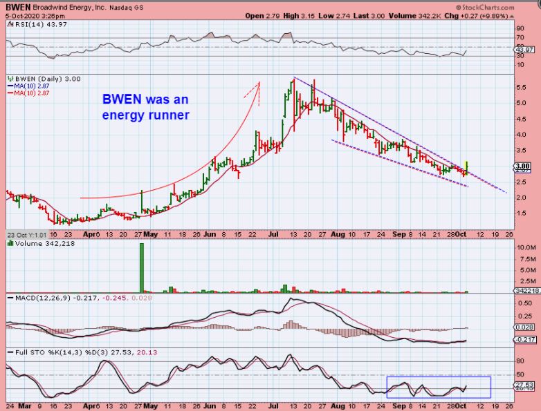 BWEN is another (Clean) Energy Stock that has now broken the downtrend too.  In the past it has been a bit choppy but also it has made strong gains. I think that it is a buy, because this sector is doing very well.