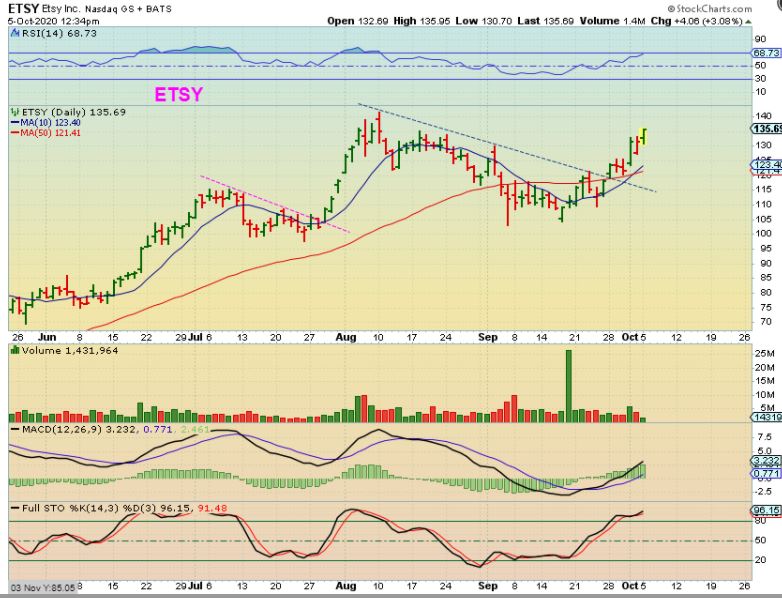 ETSY– I have the same advice for ETSY, it can run straight up as we have seen it do on June & July.