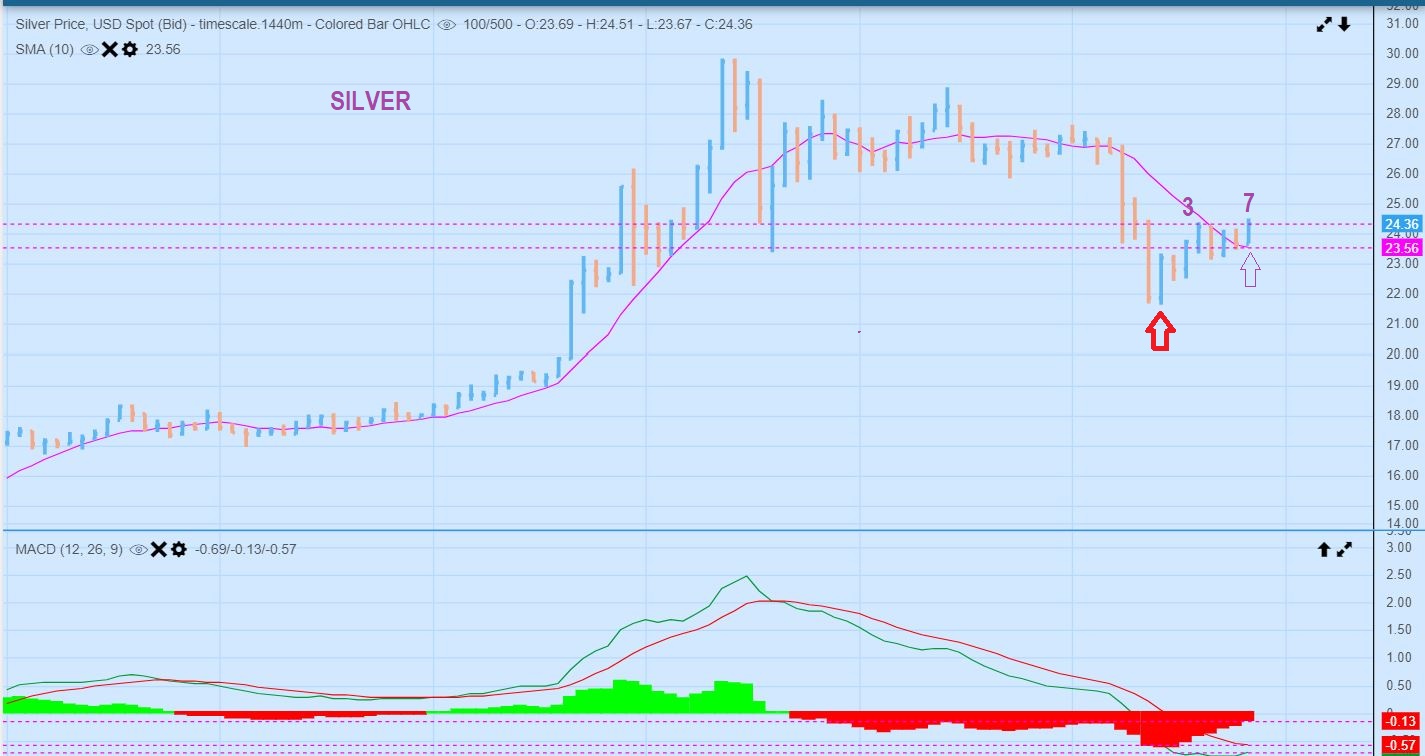 SILVER over the 10sma on Day 7.