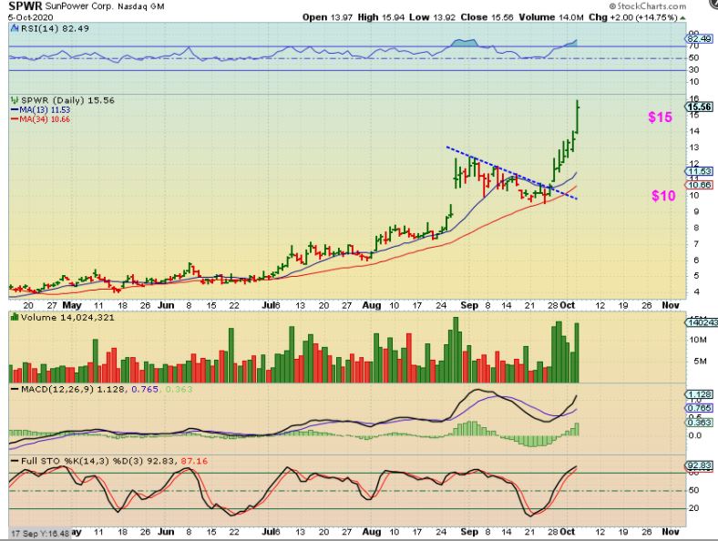 We have also been riding Solar Stocks that had bullish set ups. SPWR, CSIQ, ENPH, JKS, VSLR, RUN, and many more are still alive and running.  In fact:
