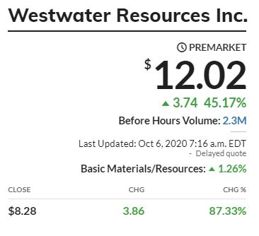 EDIT  7 a.m. WWR closed at $8.28 and I saw it at $17 early in premarket trading!  Wow! It is currently just over $12…
