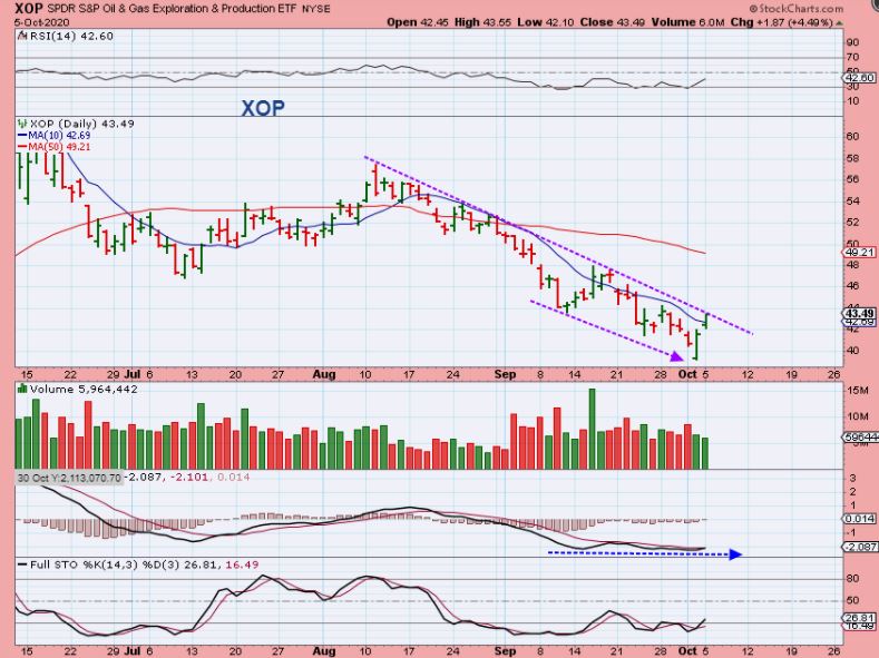 The SPX dropped Friday on the news of Trump & Covid, but it was supported by the 10 sma. Monday the General Markets shot up higher on day 7 and many of the bullish set ups continued higher too.