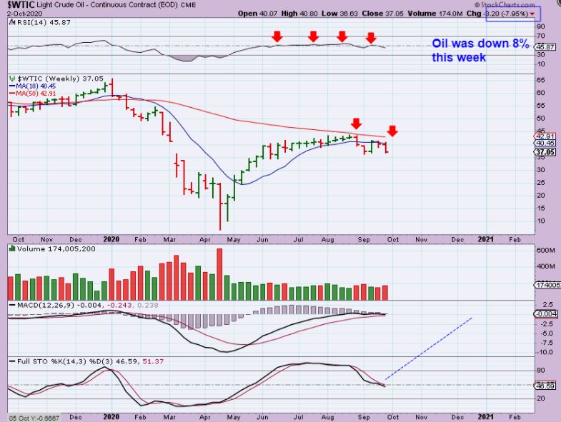 WTIC WEEKLY – Oil remains weak and sold off 8% last week.  No change here, since this was expected.