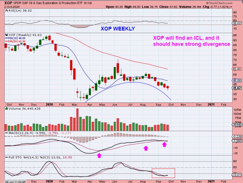 XOP WEEKLY  – I believe that the XOP has started its drop into an ICL, and when it finds that low, a nice Bullish Trade Set Up should develop.
