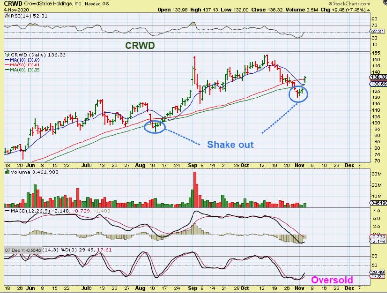 CRWD is a runner too, but it is a bit more choppy at times.  Right now we see another shake out & strong recovery. It followed the markets, so if the markets remain bullish, we should see moves higher again.