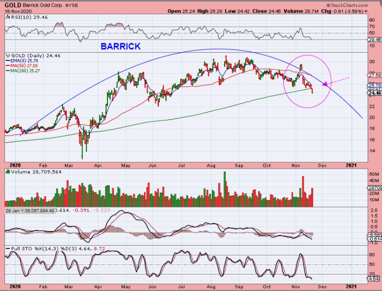 BARRICK GOLD did a Bull Trap false break higher over the 50sma and then lost it immediately too. Now it has also lost the 200sma and selling was heavy here too.